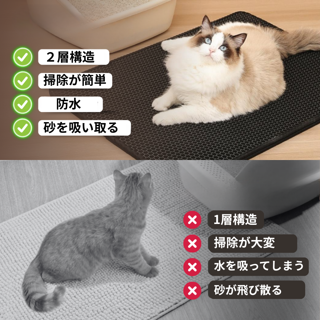 猫ちゃんのトイレの後、足についた砂があちこちに散らばって…気づけば部屋がザラザラ、ストレスがたまる一方。