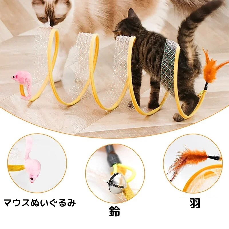 跳ね飛びトンネルは、トンネル状のおもちゃで狭いところが大好きな猫ちゃんがトンネルを潜り抜けたりして遊べて日々の運動不足を解消してくれます。